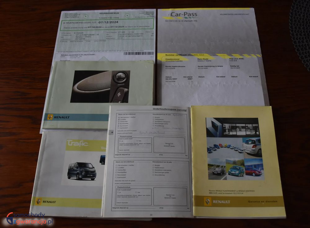 Dokument ostatniego Belgijskiego przeglądu AUTOKEURING, Car-Pass, Książkę serwisową