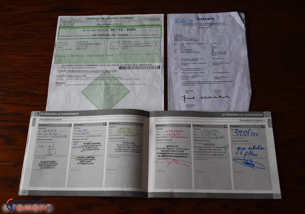 Dokument ostatniego Belgijskiego przeglądu AUTOKEURING, Car-Pass, Książkę serwisową